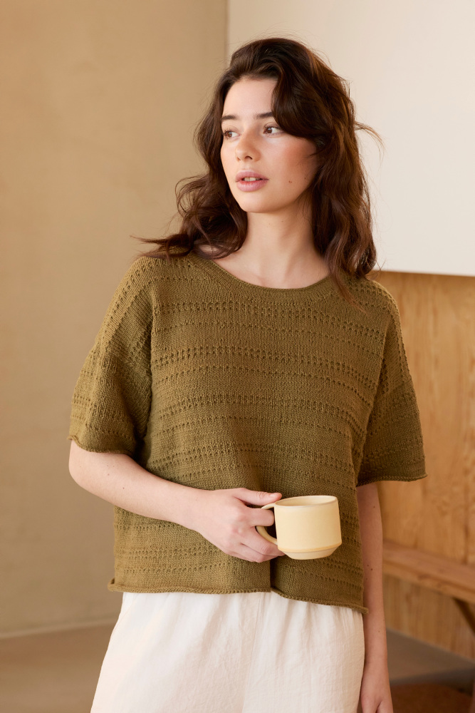 Du får både blødheden fra bomulden og den kølende effekt fra hørgarnet. Det er derfor et oplagt valg til sommerstrik.